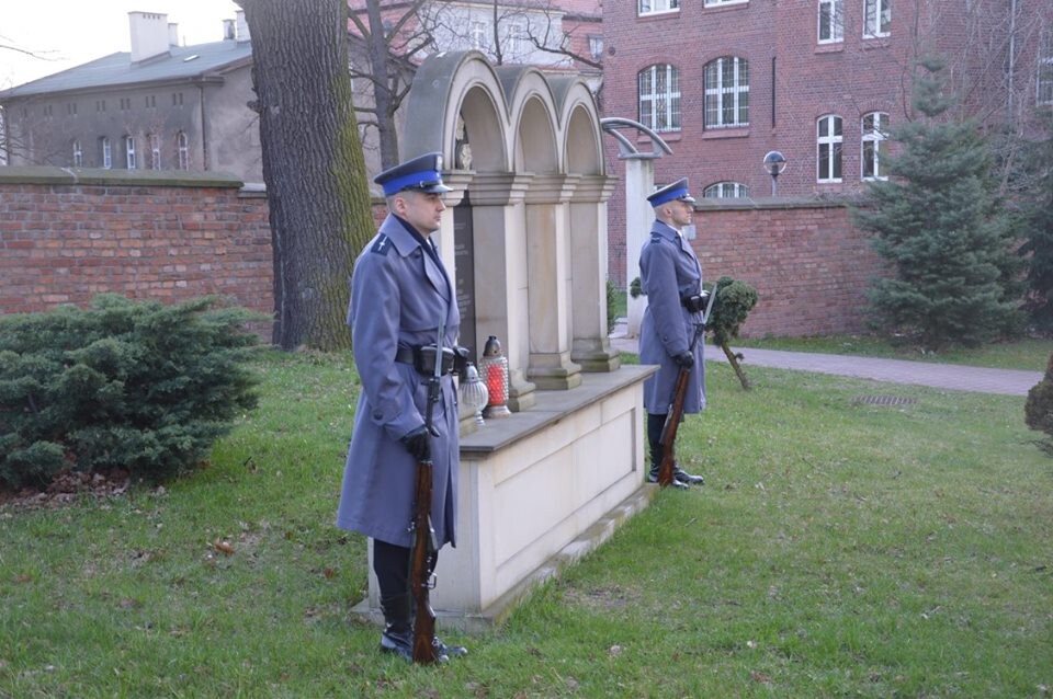 Wartę honorową pełnili policjanci, zaś wieniec w imieniu służb mundurowych złożyli komendanci policji Dariusz Waligóra, Anna Musioł komendant Komisariatu w Orzeszu oraz straży pożarnej Damian Krawczyk. Po krótkiej modlitwie i złożeniu kwiatów odczytano również dwa wiersze z antologii smoleńskiej.