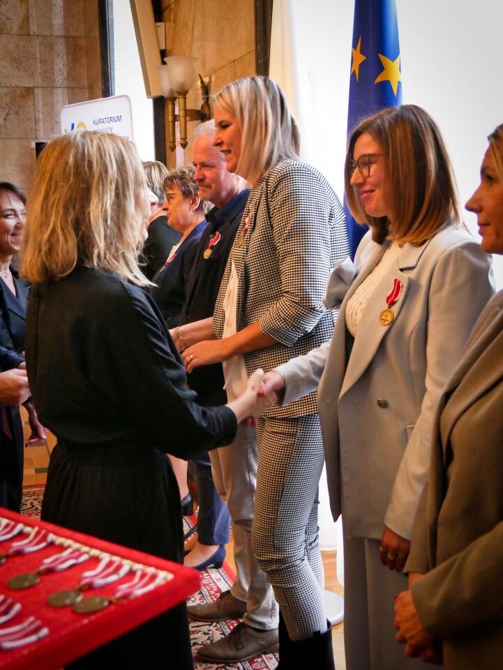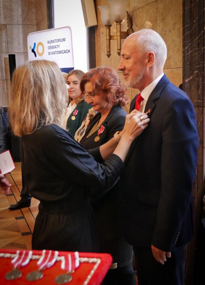 - Dedykuję ten medal wszystkim nauczycielom oraz pracownikom administracji i obsługi placówek oświatowych z terenu powiatu mikołowskiego. To dzięki Wam kolejne pokolenia naszych wspaniałych dzieci, tych diamencików, które trafiają ze szkół powiatowych i dalej na wyższe uczelnie, gdzie mają szansę stać się prawdziwymi brylantami. Zależnie od tego, jak je wspólnie wykształcimy i wychowamy, taka będzie przyszłość Polski i Europy - powiedział starosta mikołowski.