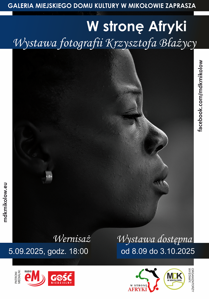 Już 5 września 2025 roku o godz. 18:00 w Galerii MDK odbędzie się wernisaż wystawy fotografii Krzysztofa Błażycy zatytułowanej „W stronę Afryki”. Wystawa jest efektem kilkunastu lat powrotów autora do krajów Afryki Wschodniej, gdzie łączy pasję dziennikarską z zaangażowaniem w projekty pomocowo-rozwojowe. Krzysztof Błażyca prezentuje portrety z północnej Ugandy, zdjęcia związane z Bożą Armią Oporu oraz fotografie z obozów dla uchodźców z Sudanu Południowego. Na wystawie nie zabraknie również fotografii przedstawiających życie codzienne, odwierty studni głębinowych oraz wielu innych, które ukazują rzeczywistość tego niezwykłego kontynentu.