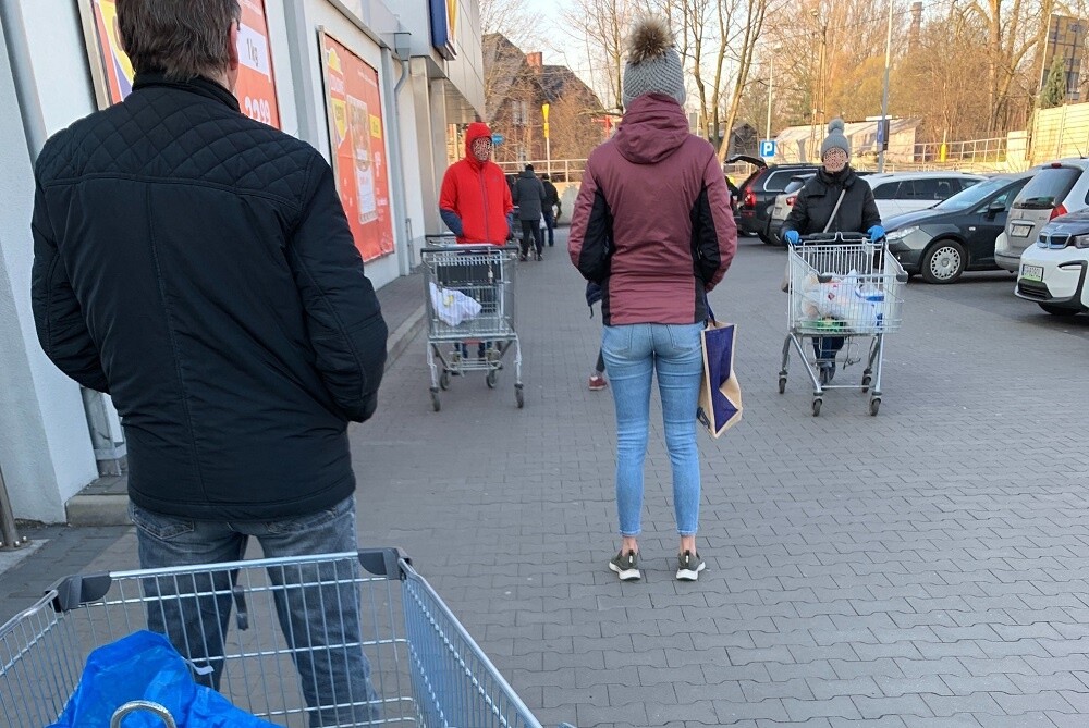Jak wygląda to w praktyce? Przed sklepami wielkopowierzchniowymi ustawiają się kolejki. Ochrona sklepu wpuszcza po jednej osobie. Klient wychodzi i dopiero wchodzi następny.