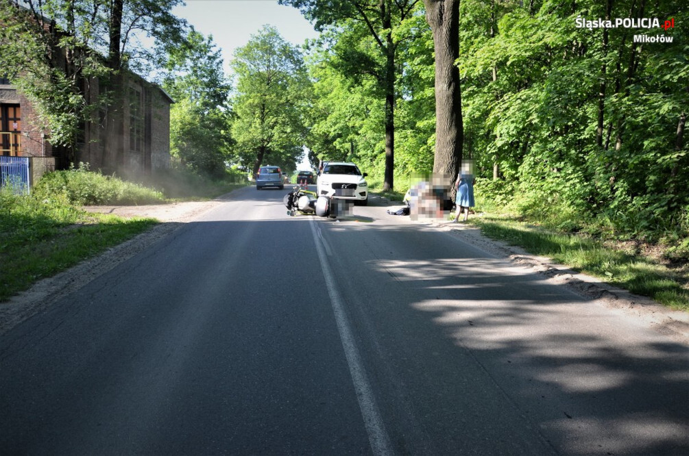 W niedzielę 4 czerwca późnym popołudniem na ulicy Pszczyńskiej w Wyrach doszło do wypadku z udziałem kierującego jednośladem. Według ustaleń policjantów, mieszkaniec Mikołowa, jadąc od strony Gostyni, nie zachował prawidłowej odległości od poprzedzającego go samochodu i chcąc uniknąć najechania na tył pojazdu, doprowadził do wywrócenia się motocyklu. Na skutek kolizji doznał złamania nogi. Poszkodowany 41-latek trafił do szpitala.