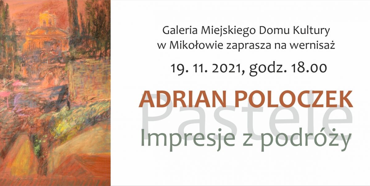 19 listopada o godz. 18.00 Miejski Dom Kultury w Mikołowie zaprasza na wernisaż wystawy pasteli Adriana Poloczka "Impresje z podróży". Wystawa będzie dostępna dla odwiedzających do 23 grudnia. Wstęp wolny!