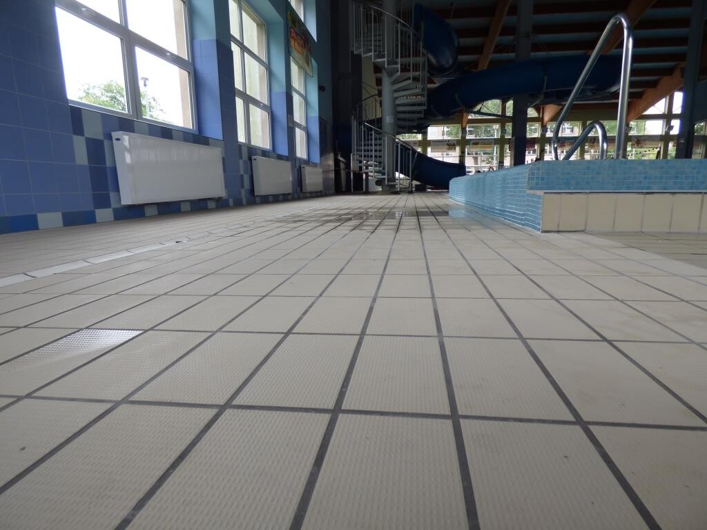 - wymiana płytek podłogowych wzdłuż basenu rekreacyjnego oraz krótkiego boku basenu sportowego,